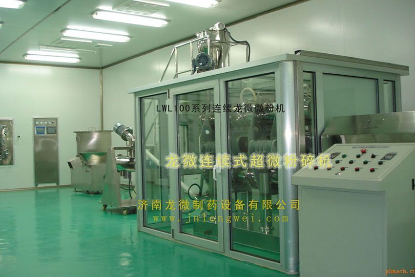 LWL100系列:用于連續(xù)生產(chǎn)型 公稱容積:100升 裝 料 量:連續(xù)式 功 率:11kw 電 壓:380V(三相)50Hz 設(shè)備總重:2960kg 工作制式:連續(xù)柔性給、排料 外形尺寸:3400×1650×2300 mm(L×W×H) 冷卻方式:常溫、低溫及超低溫粉碎作業(yè) ·變頻器準(zhǔn)確調(diào)節(jié)產(chǎn)量和細(xì)度 ·自動化程度高,適合單品批量連續(xù)生產(chǎn) ·配備復(fù)合(鋼化玻璃)隔聲罩降低噪音 A、龍微微粉機(jī)的優(yōu)良特點 ①粉碎效率高:廣泛適用于強(qiáng)纖維性、強(qiáng)韌性、高硬度、高糖高粘性、樹脂類、動物類的超微粉碎;能耗低、溫度低,避免了物料高溫氧化、變質(zhì)和有效成分的損失和偏析。 ②按GMP設(shè)計:按GMP設(shè)計,接觸物料部分全部采用不銹鋼制作,全封閉作業(yè)無粉塵污染、無物料損耗。 ③結(jié)構(gòu)更合理:結(jié)構(gòu)緊湊占地小,無需配備空壓機(jī)、輸送管道和除塵收塵裝置,接上水電即可投入運行。 ④操作更簡便:勞動強(qiáng)度低容易操作,便于拆卸清洗與日常維護(hù)。 ⑤設(shè)備型號齊:既有適合工業(yè)化生產(chǎn)的大、中型設(shè)備,也有適合小批量生產(chǎn)或科研試驗所需的小型設(shè)備。 ⑥應(yīng)用范圍廣:適于品種特性各異、差別較大的動(植)物、礦物藥材和(保健)食品原料,如韌性、脆性、高(低)硬度、含纖維量大、含油率高或含糖量高的物料。 B、龍微微粉機(jī)的特殊性能 ①按GMP要求,清潔、衛(wèi)生設(shè)計(高檔配置) ◆與物料接觸部位為拋光不銹鋼,是國際醫(yī)藥食品機(jī)械通用材質(zhì)(也可按要求改為其它金屬或非金屬材質(zhì))。 ◆易于組裝拆卸與換料;可用水、壓縮空氣、酒精或蒸汽等清洗消毒;配備復(fù)合隔聲罩降低生產(chǎn)噪音。 ◆粉碎過程全密閉無粉塵溢出,充分改善作業(yè)環(huán)境,有效成份不損失與偏析,特殊物料可用惰性氣體進(jìn)行保護(hù)。 ②粉碎能力強(qiáng) ◆100%粉碎無殘渣廢料。適合干式和濕式粉碎,濕式粉碎時可加入水、酒精或其它液體。 ◆適于中心粒徑為300目~3000目的粉碎要求,使用特殊工藝時可達(dá)1~0.1μm。 ◆對花粉等孢子類要求打破細(xì)胞壁的物料,其破壁率高于98%。 ③精密包覆 ◆ 可進(jìn)行兩種及兩種以上物料的微粒精密復(fù)合化及包覆(高精密度指向性混合)、高固含量強(qiáng)力均質(zhì)和超強(qiáng)乳化作業(yè)。 ④溫度可控 ◆ 粉碎溫度可通過調(diào)節(jié)冷卻水的溫度和流量來控制。需低溫粉碎時,配置制冷系統(tǒng)*低溫度可至-45℃(高檔配置)。 C、龍微微粉機(jī)的工藝應(yīng)用 以龍微細(xì)胞級微粉碎技術(shù)為核心的工藝應(yīng)用,為中藥制藥技術(shù)創(chuàng)新、產(chǎn)品更新與提高附加值創(chuàng)造了廣闊的運作空間。 1、解決了中藥粉碎作業(yè)存在的難題 ①強(qiáng)纖維性(如靈芝、甘草等) ②高糖高粘性(如大棗、枸杞子、麥冬等)③樹 脂 類(如乳香、沒藥等) ④動 物 類(如蝎子、水蛭等) ⑤強(qiáng) 韌 性(如羚羊角、海馬等) ⑥礦 物 類(如朱砂、信石等) 2、中藥劑型改革、提高療效、降低用藥量及提高微粉工藝水平 ⑴新型中藥微粉飲片300目 ⑵生粉軟膠囊制劑(人參軟膠囊) ⑶一步法膏體制備(六味地黃軟膠囊) ⑷高效透皮(膜)制劑 ⑸降低藥材消耗(覆盆子減少損耗20%) ⑹高效噴霧制劑 ⑺實現(xiàn)無輔料或少輔料造粒、壓片(謂爾舒) ⑻高效率(小型設(shè)備:朱砂每小時25Kg) ⑼以降低服用量和提高療效為目的(八味地黃丸) ⑽減少用藥量80%—90%,改革中藥湯劑(調(diào)心調(diào)胃湯) ⑾實現(xiàn)優(yōu)于±1‰均勻度的復(fù)合化和精密包覆(人工牛黃) ⑿低溫粉碎,新鮮中草藥及鮮活動物組織(烏雞、螃蟹等) |