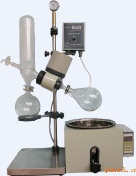 RE201D水浴鍋升降-旋轉(zhuǎn)蒸發(fā)器 用途特點(diǎn):旋轉(zhuǎn)蒸發(fā)器是應(yīng)用真空負(fù)壓條件下,恒溫加熱,薄膜蒸發(fā)的原理研制而成。 無級(jí)調(diào)速使玻璃旋轉(zhuǎn)瓶恒速旋轉(zhuǎn),物料在瓶壁形成大面積均勻薄膜,再由可控恒溫水浴鍋對(duì)旋轉(zhuǎn)瓶均勻加熱,在系統(tǒng)抽真空條件下高速蒸發(fā),溶媒蒸氣經(jīng)高效玻璃雙冷凝器冷卻,回收于收集瓶。本儀器另設(shè)有加料接口及放料機(jī)構(gòu),便于蒸發(fā)過程中自動(dòng)、連續(xù)工作。 技術(shù)參數(shù)