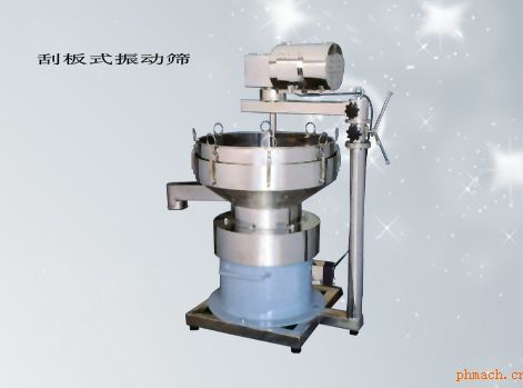 ※    在振動篩選過程中,粘性物料粘住篩盆,及一輕質(zhì)料飄起難于過網(wǎng),通過篩盆上的轉(zhuǎn)動式刮板加壓,強迫物料過網(wǎng),從而解決了一般篩選機不能篩選以上特征物料的問題。