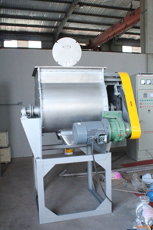 WZ無重力混合機 工作原理: 本系列混合機以強烈、高效混合為特點、臥式筒體內(nèi)兩根攪拌等速反向旋轉(zhuǎn),軸上特殊布置的槳葉確保物料徑向、環(huán)向、軸向三向運動,形成復(fù)合循環(huán),在極短的時間內(nèi)達到均勻混合