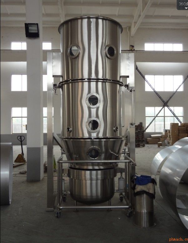 FL系列沸騰制粒干燥機(jī) 產(chǎn)品介紹: 沸騰制粒是機(jī)械設(shè)計(jì)與制劑工藝有機(jī)的結(jié)合 工作原理: 物料粉末粒子,在原料容器(流化床)中呈環(huán)形流化狀態(tài),受到經(jīng)過凈化后的加熱空氣預(yù)熱和混合,將粘合劑溶液霧化噴入,使若干粒子聚集成含有粘合劑的團(tuán)粒,由于熱空氣對物料的不斷干燥,使團(tuán)粒中水分蒸發(fā),粘合劑凝固,此過程不斷重復(fù)進(jìn)行,形成理想的、均勻的多微孔球狀顆粒。