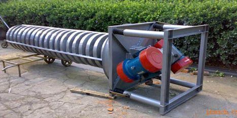 垂直振動(dòng)提升機(jī)是由提升槽、振動(dòng)電機(jī)、減振系統(tǒng)和底座等組成。該系列提升機(jī)是采用振動(dòng)電機(jī)作為振動(dòng)源,固定在提升槽上的兩臺(tái)相同型號(hào)的振動(dòng)電機(jī)中心線交叉一定角度安裝,并做相反方向自同步旋轉(zhuǎn),振動(dòng)電機(jī)所帶的偏心塊在旋轉(zhuǎn)時(shí)各個(gè)瞬間位置所產(chǎn)生的離心力之分力沿拋擲方向作往復(fù)運(yùn)動(dòng),使支承在減振器上的整個(gè)機(jī)體不停振動(dòng),使物料在提升槽內(nèi)被拋起的同時(shí)向上運(yùn)動(dòng),物料落入入料槽后,開(kāi)始被拋起,此時(shí)可以使物料與空氣充分接觸,還可以起到散熱冷卻的作用。