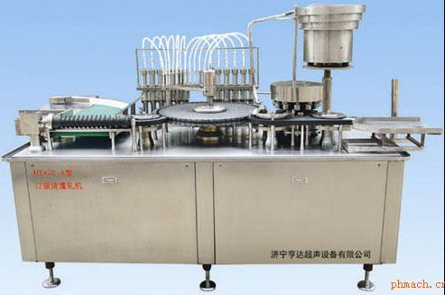 HDGZ-A型口服液灌裝機(jī)為灌裝壓塞鎖蓋一體機(jī),主要用于食品、化工和制藥行業(yè)小劑量的口服液、酊水、糖漿的灌裝和扎蓋工序,該機(jī)可自動(dòng)完成理瓶、輸瓶、定量灌裝、理蓋、送蓋、軋蓋工序,凡與藥物接觸的零件均采用不銹鋼或聚四氟乙稀制造。