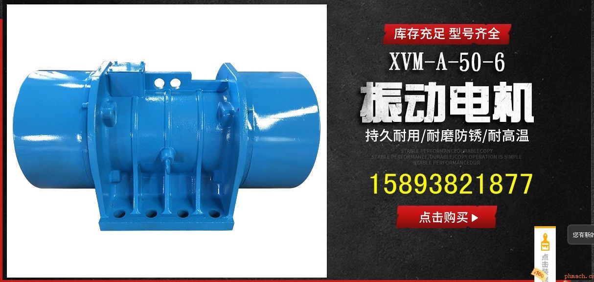 一、XVM-A-160-6振動電機(jī) 概述: XVM-A系列振動源三相異步電動機(jī)集動力源和振動源為一體,是一種高效節(jié)能的通用性激振源,體積小,激振力大,結(jié)構(gòu)可靠,使用維護(hù)方便,簡稱振動電機(jī)。其它名稱:,震打電機(jī)。本系列產(chǎn)品廣泛應(yīng)用于礦山、煤炭、電力、化工、糧食加工、冶金、鑄造、輕工、醫(yī)藥等行業(yè)。是實(shí)現(xiàn)粉狀、粒狀、塊狀等散體料機(jī)械化篩分、輸送、破碎、充填、防堵塞的理想激振源。本機(jī)可單機(jī)使用,也可多機(jī)組合使用。 1、振動電機(jī)使用條件 本系列振動電機(jī)滿足下列條件時(shí),能連續(xù)輸出額定激振力。 (1) 振動加速度:不超過7g(g:重力加速度) (2) 環(huán)境溫度:不超過40℃ (3) 海拔:不超過1000m (4) 電源頻率:50HZ (5) 電壓:380v (6) 溫升:小于80K(電阻法) 2、振動電機(jī)型號說明 (1) XVM-A系列產(chǎn)品型號由三部分組成(如下示例) XVM-A 5-4 XVM-A---振動電機(jī) 5---*大激振力(千牛頓) 4---極數(shù) (2)XVML系列表示立式安裝振動電機(jī)。 二、振動電機(jī)技術(shù)參數(shù):標(biāo)準(zhǔn)XVM-A-120-6振動電機(jī) 8.5KW六級振動電機(jī)