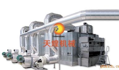 工作原理: 將所要處理的物料通過適當(dāng)?shù)妮o料機構(gòu),如星型布料器、擺動帶、粉碎機或造粒機、分布在輸送帶上,輸送帶通過一個或幾個加熱單元組成的通道,每個加熱單元均配有空氣加熱和循環(huán)系統(tǒng),每一個通道有一個或幾個排濕系統(tǒng),在輸送帶通過時,熱空氣從上往下或從下往上通過輸送帶上的物料,從而使物料能均勻干燥。 性能特點: • 可以調(diào)節(jié)空氣量、加熱溫度、物料停留時間及加料速度以取得*佳干燥效果。 • 網(wǎng)帶烘干機配置靈活,可使用網(wǎng)帶沖洗系統(tǒng)及物料冷卻系統(tǒng)。 • 大部分空氣循環(huán)利用,高度節(jié)省能源。 • 獨特的分風(fēng)裝置,使熱風(fēng)分布更加均勻,確保產(chǎn)品品質(zhì)的一致性。 • 熱源可采用蒸氣、導(dǎo)熱油、電或燃煤(油)熱風(fēng)爐配套。 適應(yīng)物料: 網(wǎng)帶烘干機適用于脫水蔬菜、顆粒飼料、味精、椰蓉、有機顏料、合成橡膠、丙稀纖維、藥品、藥材、小木制品、塑料制品、電子無器件老化、固化等。 技術(shù)參數(shù): ![]() |