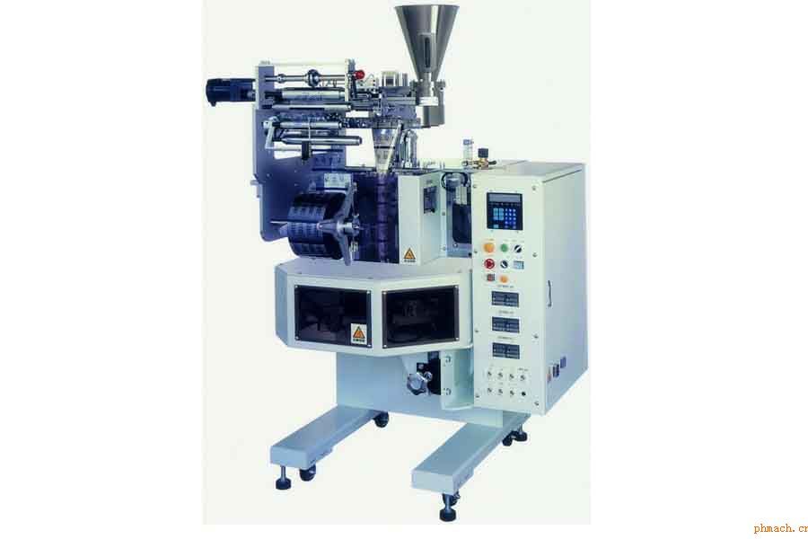 粉末、顆粒等產(chǎn)品計量出一定量的容積,根據(jù)印刷卷膜的印刷版輥周長,連續(xù)進行制袋、充填、熱封、切斷信封、合掌封的棒狀制袋充填包裝機