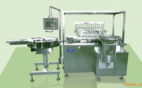 該機(jī)主要用于抗生素玻璃瓶水針和凍干粉針的水劑灌裝和加塞,是西林瓶水針和凍干粉針生產(chǎn)線的主要設(shè)備之一。該機(jī)灌裝部分采用十二頭直線連續(xù)跟蹤灌裝機(jī)構(gòu),使灌裝時間延長,灌注緩慢均勻,但灌裝效率卻大大提高,每分鐘可灌裝300瓶,*高可達(dá)到350瓶。由于斜帽式按塞輪上下可調(diào),輸瓶采用同步帶方式,更換瓶型時,只需調(diào)整軌道寬度和按塞撥瓶盤即可。該機(jī)灌裝采用陶瓷泵,計量精度高,無磨損,按塞采用真空吸塞和旋轉(zhuǎn)連續(xù)同步壓塞方式,運(yùn)行平穩(wěn)。該機(jī)具有無滴漏,泡沫少,針頭提起時不滴藥,生產(chǎn)效率高,清洗滅菌方便,操作簡單,維修保養(yǎng)方便等特點。該機(jī)采用PLC、人機(jī)界面控制,同時具備手動操作功能。該機(jī)與藥物接觸部位和零部件均采用316L不銹鋼和其他耐腐蝕性材料制造,符合GMP要求。 |
