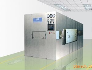 GMS系列網(wǎng)帶式隧道滅菌干燥機(jī),適用于抗生素瓶、口服液瓶的干燥、滅菌。該產(chǎn)品是我公司引進(jìn)國(guó)外技術(shù)開(kāi)發(fā)研制的新一代隧道滅菌干燥機(jī)。本機(jī)性能完善,外形美觀,易于清潔,符合GMP要求,在國(guó)內(nèi)同類產(chǎn)品中處*水平。該機(jī)采用PLC、人機(jī)界面控制,對(duì)整機(jī)初預(yù)熱、預(yù)熱、滅菌、冷卻等運(yùn)行工藝進(jìn)行*的可編程序設(shè)定控制,具有參數(shù)顯示,自動(dòng)打印記錄和故障報(bào)警顯示功能。該機(jī)設(shè)有在位超聲波清洗網(wǎng)帶功能,具有完整的100級(jí)層流凈化系統(tǒng),進(jìn)風(fēng)口和冷卻級(jí)及前預(yù)熱級(jí)均為100級(jí)層流,杜絕外界空氣進(jìn)入機(jī)內(nèi),確保工作室內(nèi)保持100級(jí)狀態(tài)運(yùn)行。本機(jī)采用鏈輪機(jī)構(gòu)傳送網(wǎng)帶,消除一般網(wǎng)帶易跑偏的缺陷。