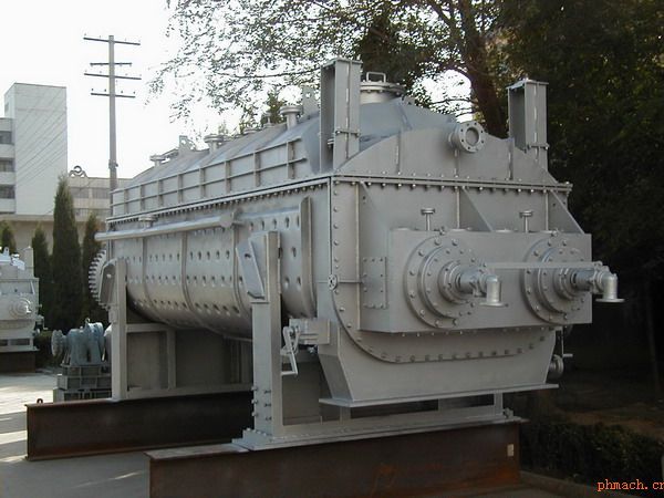 | 雙槳葉干燥機是一種使物料(有機、無機的顆粒或粉狀物料)直接與旋轉(zhuǎn)的空心楔型加熱件接觸進行熱傳遞的干燥機。它不需要空氣作為加熱介質(zhì),所用的空氣僅僅是一種載體,目的是把蒸發(fā)出的蒸汽帶走。