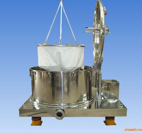 轉(zhuǎn)鼓璧上進(jìn)行離心過(guò)程.液相透過(guò)固相物料及濾袋的縫隙.經(jīng)轉(zhuǎn)鼓孔甩至機(jī)殼空膛.從底盤(pán)出液口排出。固相物料則被截留在內(nèi),停機(jī)后,開(kāi)啟機(jī)蓋(借助特制設(shè)計(jì)的平衡助力裝置)拔出蘭蓋鎖緊栓。用特制的吊具將濾餅吊出機(jī)外設(shè)定地點(diǎn)卸料,即完成一個(gè)工作循環(huán)。機(jī)蓋上配有洗滌管,可以對(duì)物料進(jìn)行洗滌。