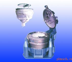 SD1000型吊袋離心機(jī)是屬于過濾式離心機(jī)的一種,是利用轉(zhuǎn)鼓(離心藍(lán))的高速運(yùn)轉(zhuǎn)產(chǎn)生的離心力,將注入轉(zhuǎn)鼓里的濾液通過襯在轉(zhuǎn)鼓里的濾袋分離、濾渣留 在轉(zhuǎn)鼓里,濾液經(jīng)出液口流至收集器,待達(dá)到裝料限度后,停止加料,切斷電源,用制動(dòng)裝置使轉(zhuǎn)鼓停止回轉(zhuǎn)(附變頻控制器時(shí)可用制動(dòng)電器單元實(shí)現(xiàn)),打開機(jī)蓋,用吊裝工具將濾袋一起吊出機(jī)外至放了地點(diǎn),松下放料繩,一次性卸料,即完成了一個(gè)工作循環(huán)。 |