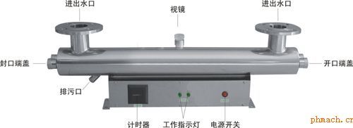 GD系列過流式紫外線殺菌器特點 1、以304不銹鋼作腔體材料,內外拋光處理(材料可訂制,如316L或316); 2、配置紫外線專用鎮(zhèn)流器,工作穩(wěn)定保證紫外線殺菌燈壽命和效率; 3、配置高透光率純石英套管,保證殺菌和消毒效果; 4、采用進口低壓汞紫外線殺菌燈,使用壽命≥9000小時,在使用壽命內UV-C輸出恒定; 5、帶有紫外線燈管工作指示燈、工作累時計和故障報警系統(tǒng);